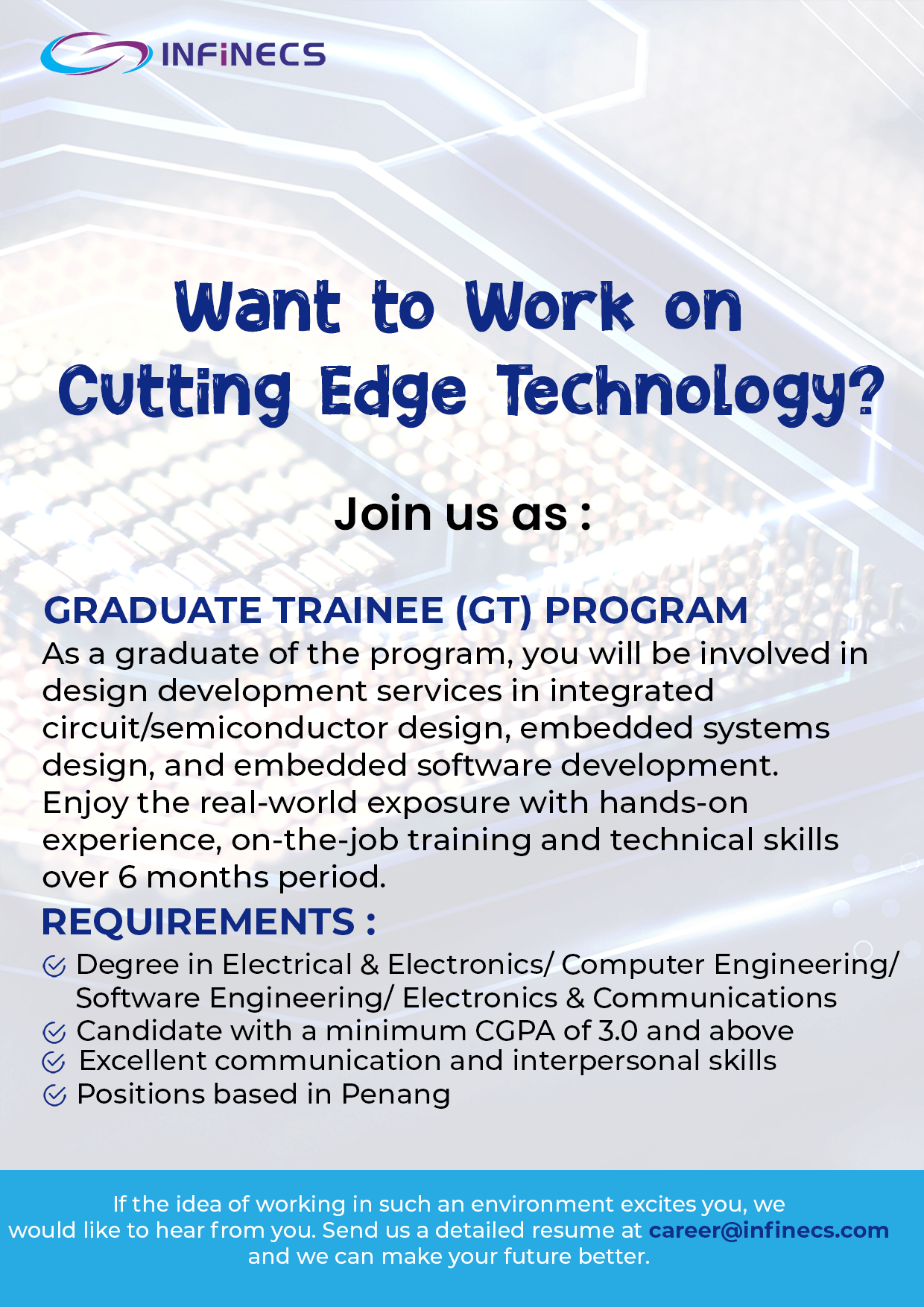 Infinecs is a Penang-based leading microelectronics design services company with a global presence, providing value-added design development services in integrated circuit/semiconductor design, embedded systems design, and embedded software development.