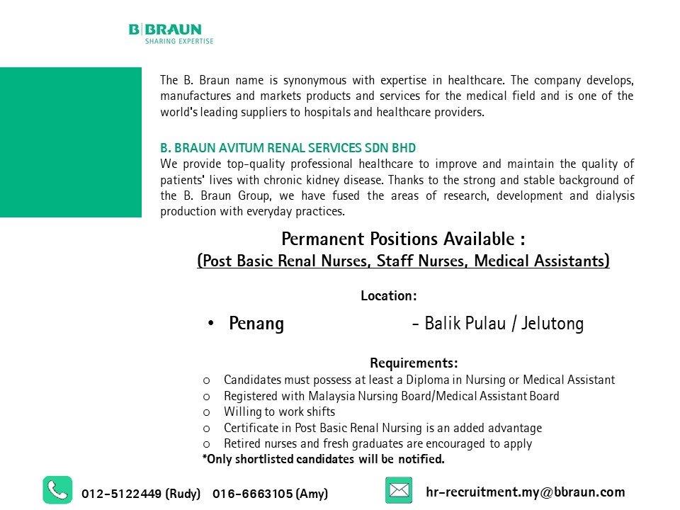 Permanent Position Available at B.Braun Group By penangcat - March 30, 2022 Penang Posted on March 30, 2022 Applications have closed B.Braun Group