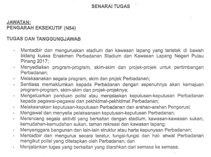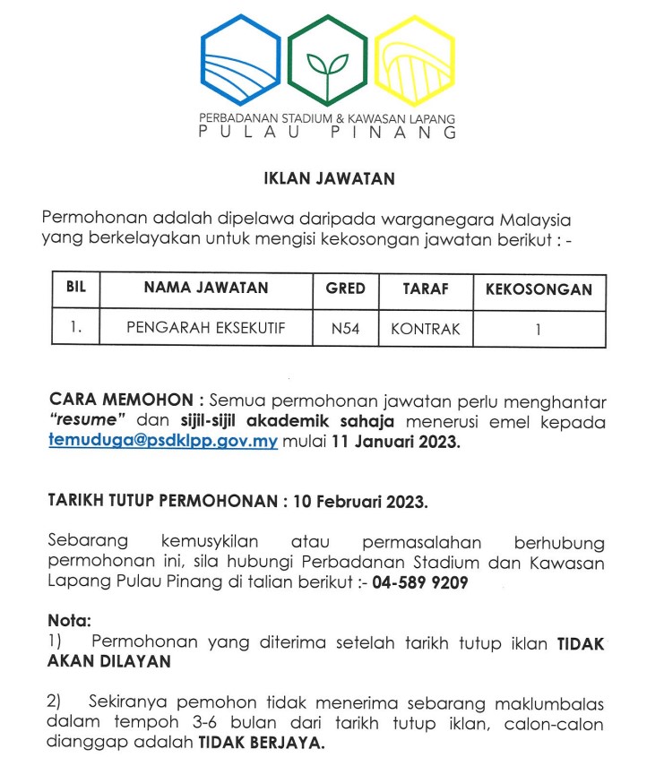 Jawatan Kosong Bertaraf Kontrak di Perbadanan Stadium & Kawasan Lapang Pulau Pinang.