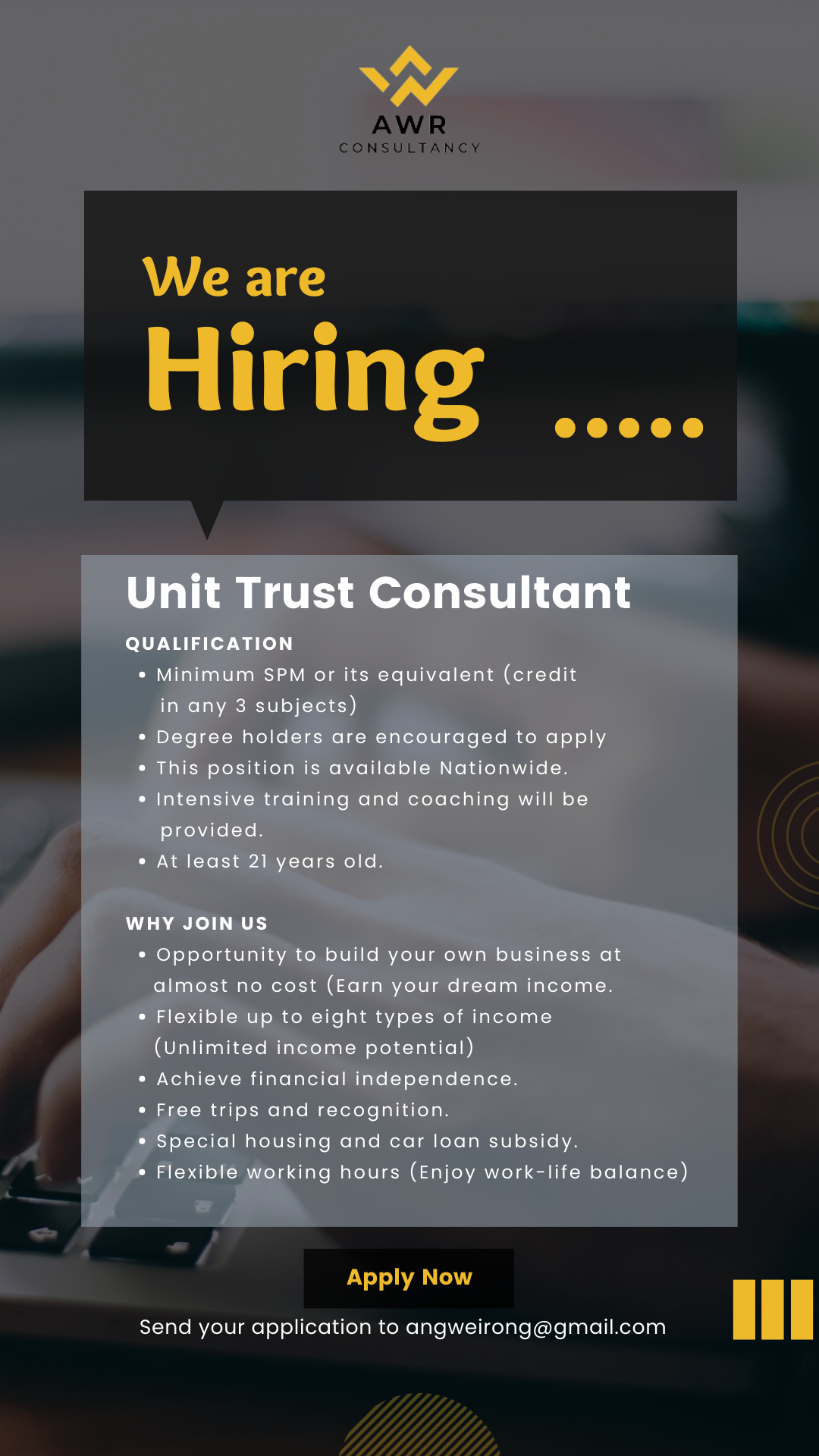 Are you looking to start your own unit trust business and do not know how? You are working full time and want a part time career? Are you eager to help yourself and help others? Are you a team player?