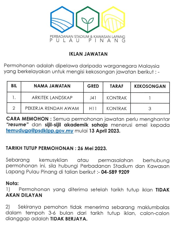 Jawatan Kosong Bertaraf Kontrak di Perbadanan Stadium & Kawasan Lapang Pulau Pinang