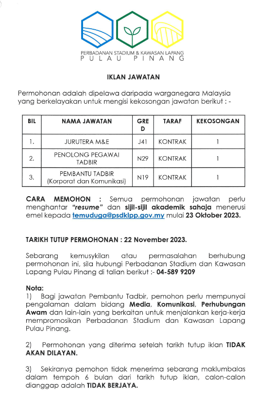 TARIKH TUTUP PERMOHONAN : 22 November 2023